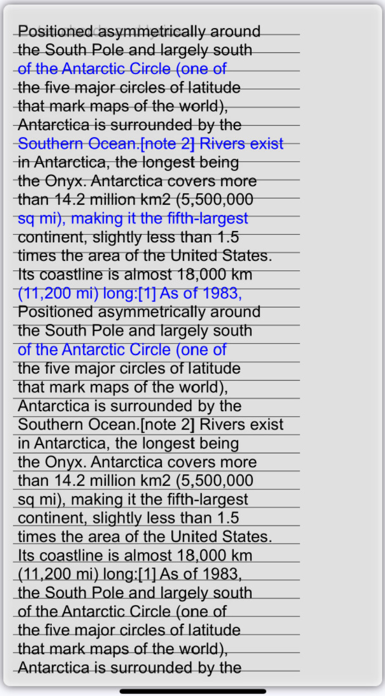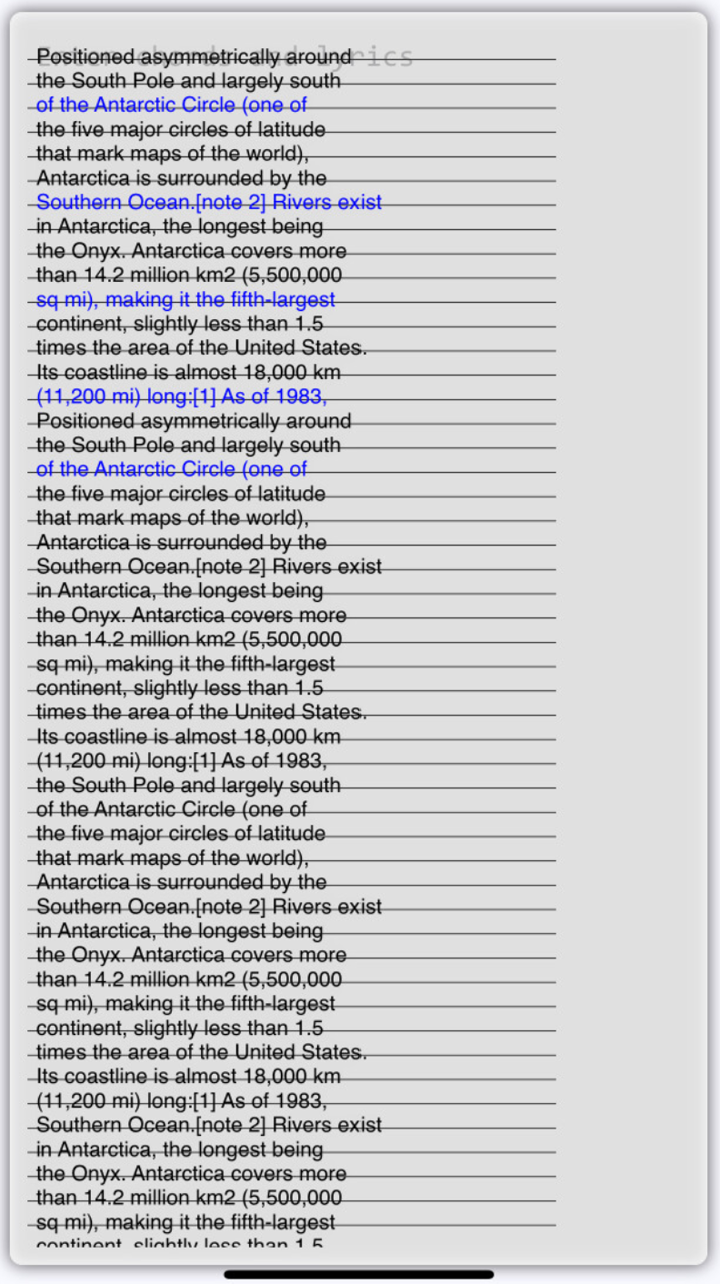 但是,如果我使用UIStringAttributes.Font Arial17pt设置属性,那么18.99的直线高度似乎不准确,如下所示: