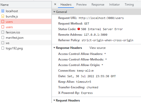 Proxy error: Could not proxy request /users from localhost:3000 to http://localhost:5000/.