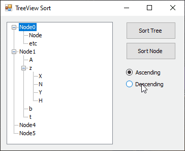 public static void Sort(this TreeView self, SortOrder order = SortOrder.Ascending)