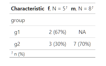 m 1 2我知道"by“未加权变量可以访问tbl_summary_object$df_by。但是,我希望根据n<2在未加权数据中更改每个单元。任何指示都将不胜感激。