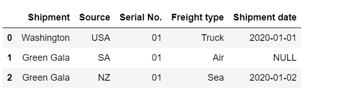 'Shipment date': ['2020-01-01','NULL','2020-01-02']})