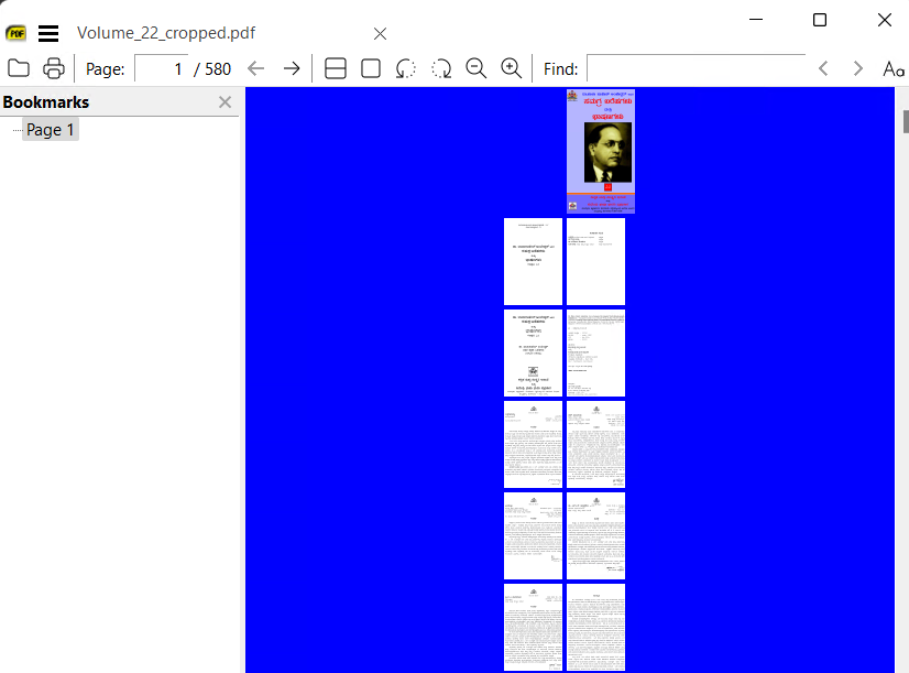 我的建议是使用受人尊敬的"Briss“(第0.9节)或2.0,您可以快速地手动调整一个很好的折衷方案,跨越那些变幻莫测的页面。下载、安装和设置理想的手动输出只需几秒钟,使用0.9就可以跳过页面1。使用自动裁剪工具通常会在许多情况下对输出进行调整,比如这一次。