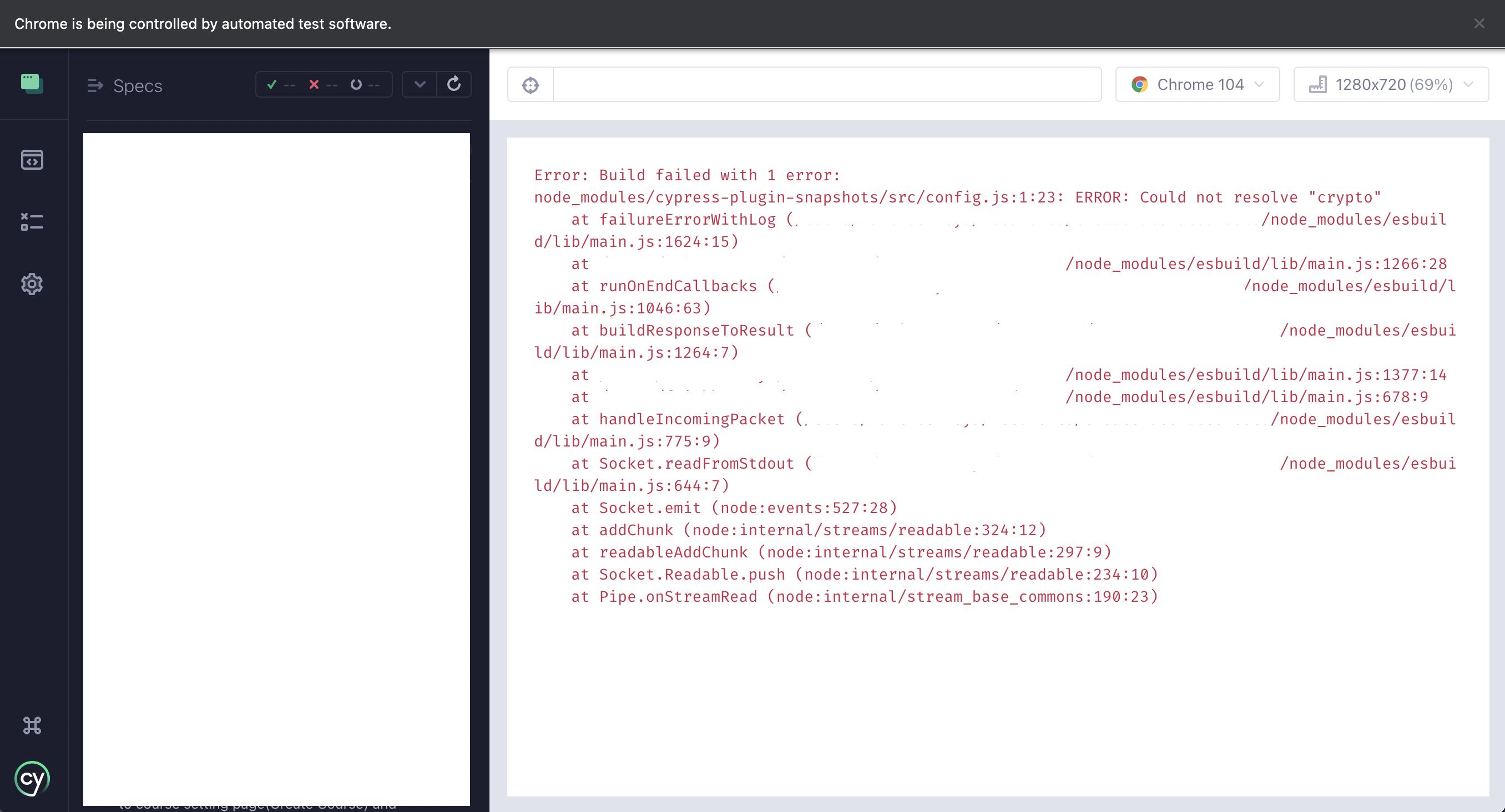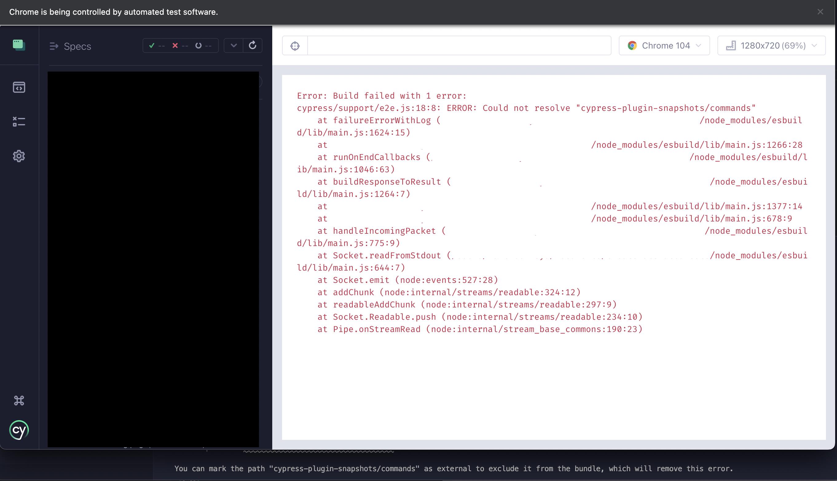 当我试图运行任何我的规范文件时,我会得到这个错误。以前起作用了。我是不是错过了一步?如何将路径标记为外部路径?