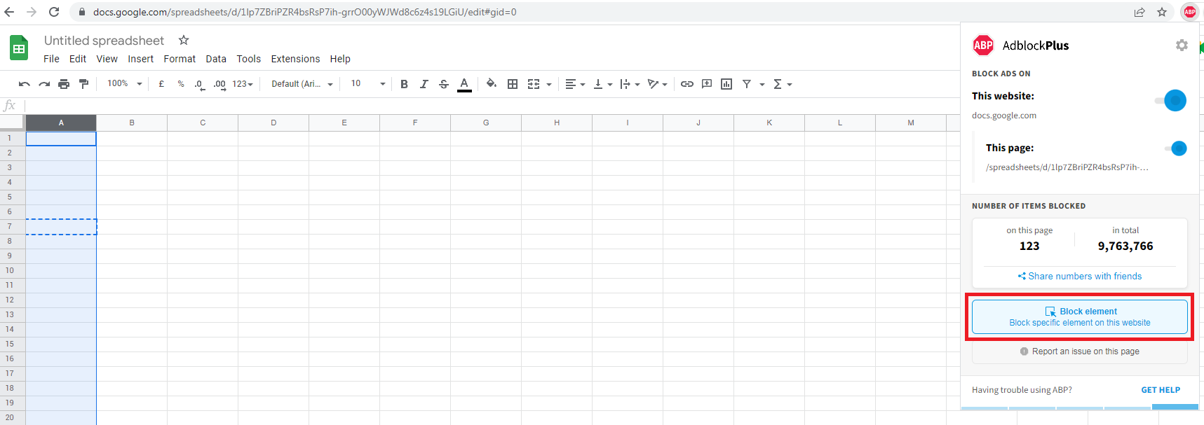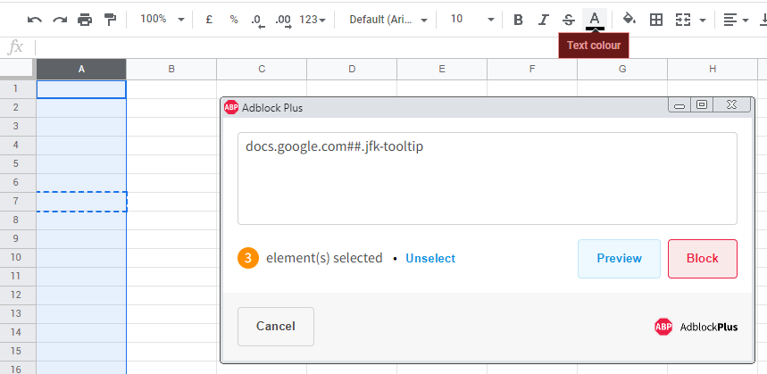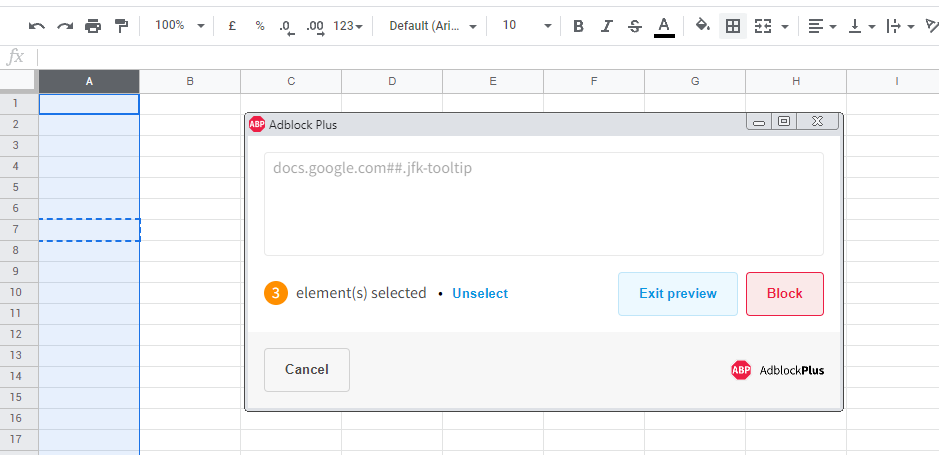 您也可以这样做,但不能直接/在google工作表内。例如,您可以使用Adblock选项“块元素”来完成此操作。