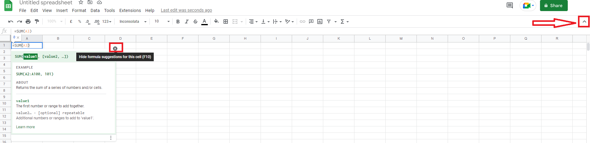 单元格工具提示可以用×隐藏,而^按钮可以隐藏在右边。