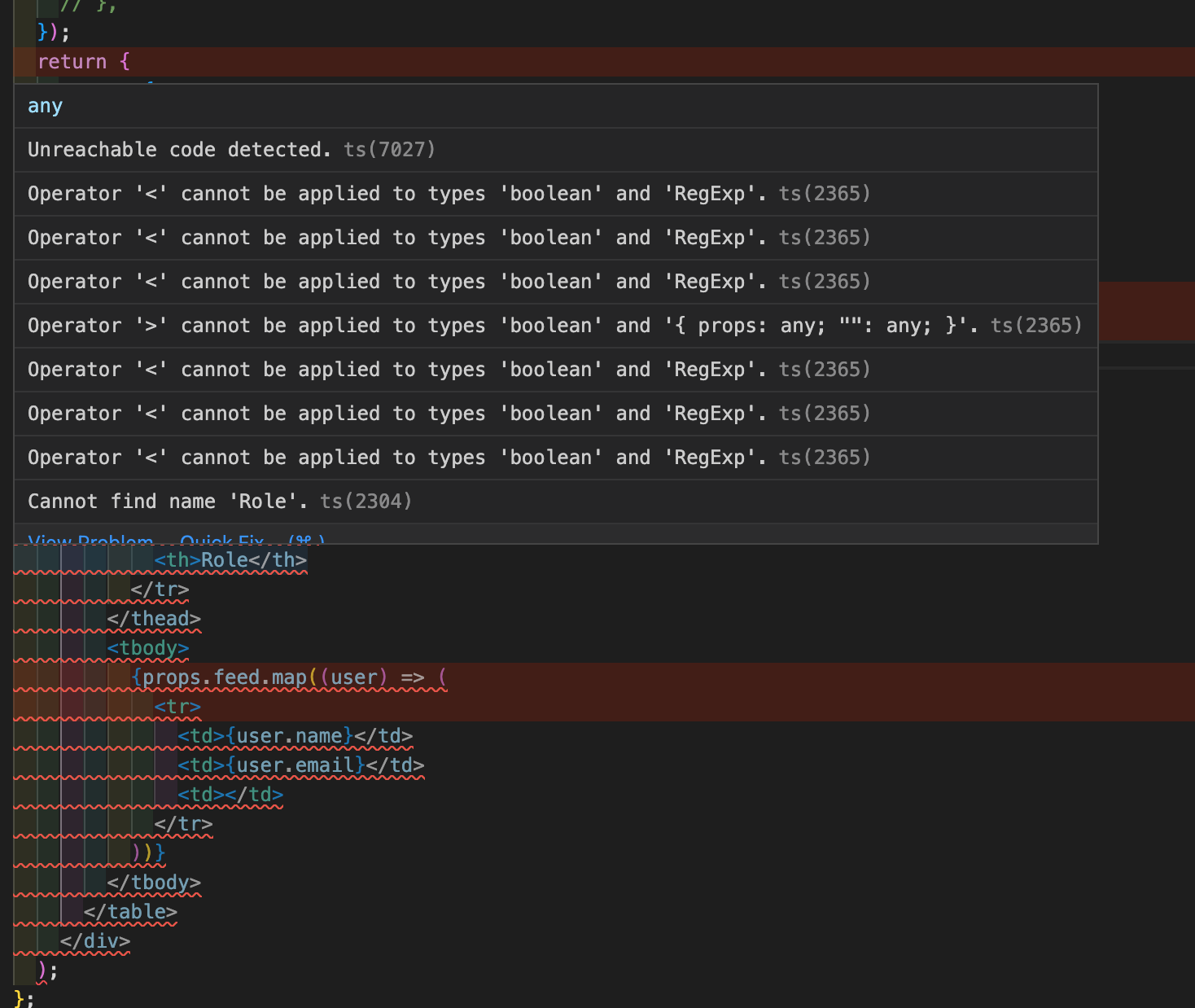 在用.tsx编辑VSCode文件时,我一直存在错误。这些错误只影响编辑器,代码编译良好,编译器不会抱怨任何事情。