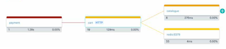 考虑到Kubernetes没有提供服务如何相互交互的完全可见性,我想自动派生和映射服务。例如,如下图所示,我们如何导出付款服务与购物车服务和购物车服务与目录和红皮书的交互作用。
