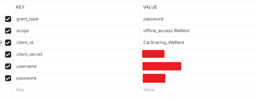 客户端上获得访问令牌,您只能通过在CarSharing_WeRent
