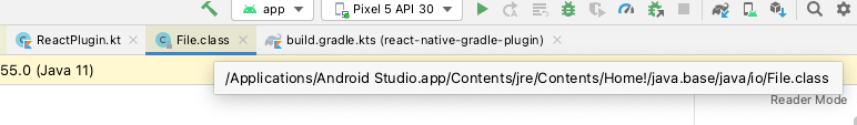 在android中,当在react本机gradle-plugin上徘徊时,它使用了java 11,我在终端中安装了哪个java -version是java 11: