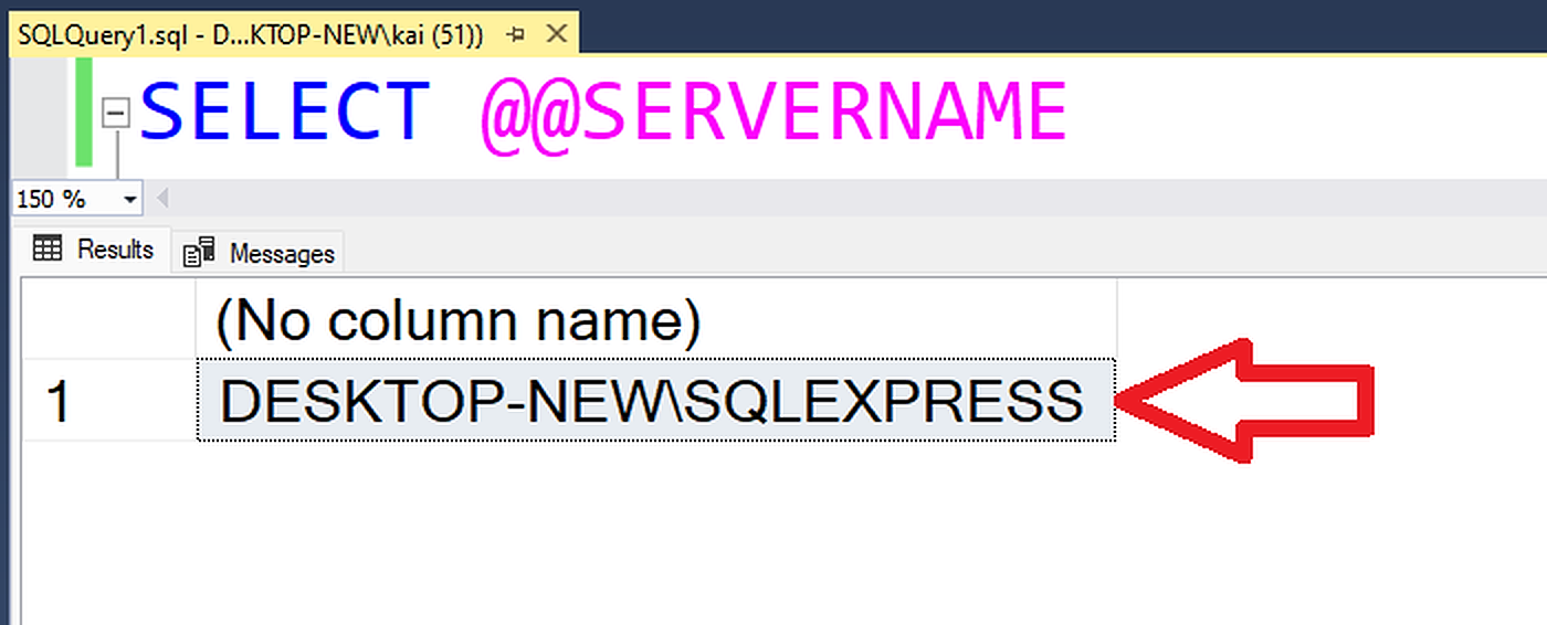 然后,如果再次检查 MSSQL名称,则 MSSQL server名称现在是新的MSSQL服务器“桌面-新\SQLEXPRESS”,如下所示。