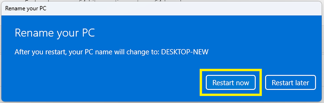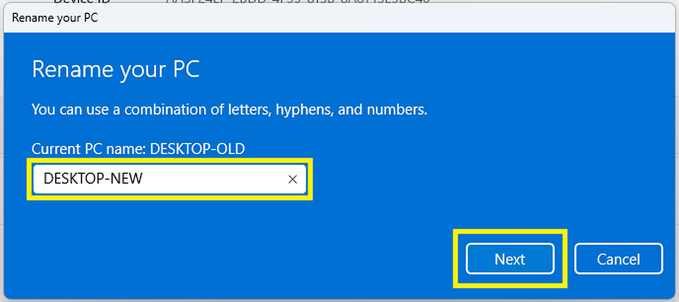 若要将Windows设备名为"DESKTOP-NEW",的从“桌面旧”重命名为,请将"DESKTOP-NEW".然后点击"Next"