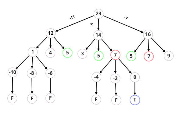 基本上,当你第一次遇到这样的问题时,蛮力是正确的选择。例如,我们有一个值[11, 9, 7]的列表,我们想知道是否可以使用这些硬币的总和来得到23。我们可以探索每一个可能的组合来验证这一点。