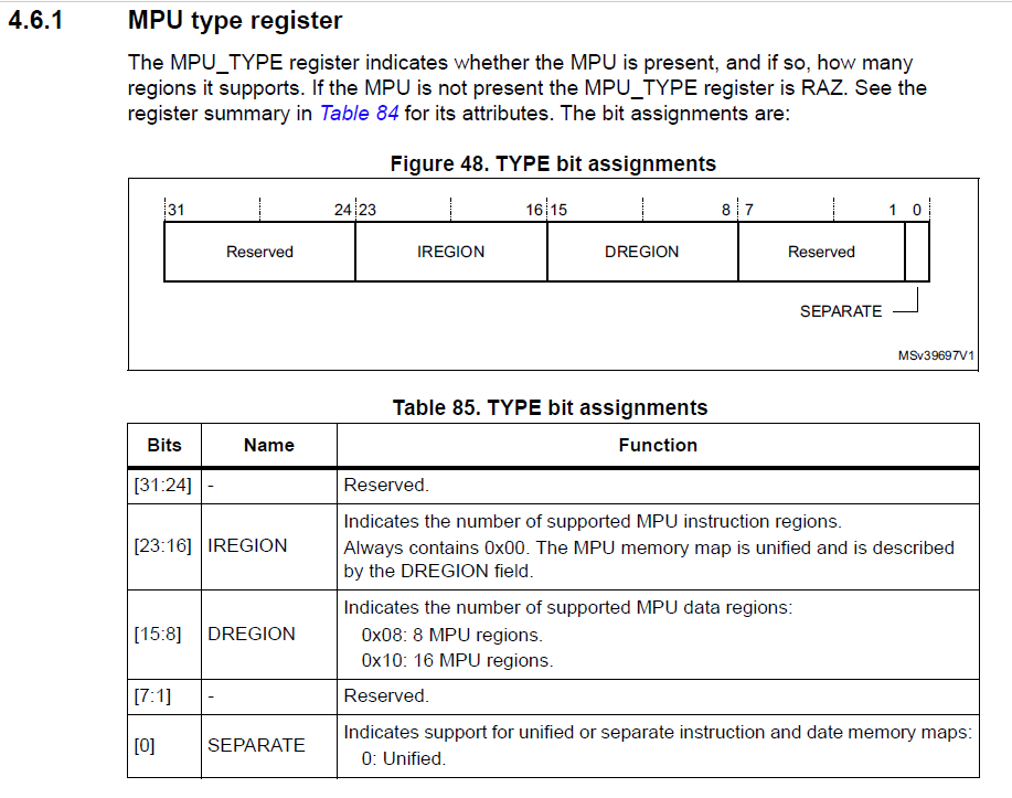编辑:从链接的手动P254响应后,删除TXM_MODULE_MANAGER_16_MPU以指示它有16个区域导致意外行为,MPU_TYPE.DREGION= 0x10也表示16个区域,