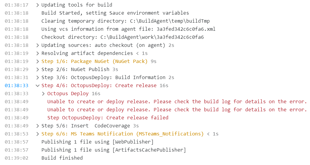 我正试图在Team中部署一个.NET核心应用程序。部署在步骤4/6中失败: OctopusDeploy: Create &给出以下错误。