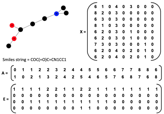 我有一个用图表表示的药物数据集,每个数据集由三个非方矩阵描述: