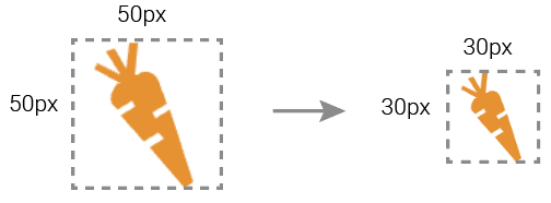 目前,胡萝卜路径适合于50 of *50 of的平方。我想要使胡萝卜路径符合另一个px大小,例如,30 px*30 px的平方。