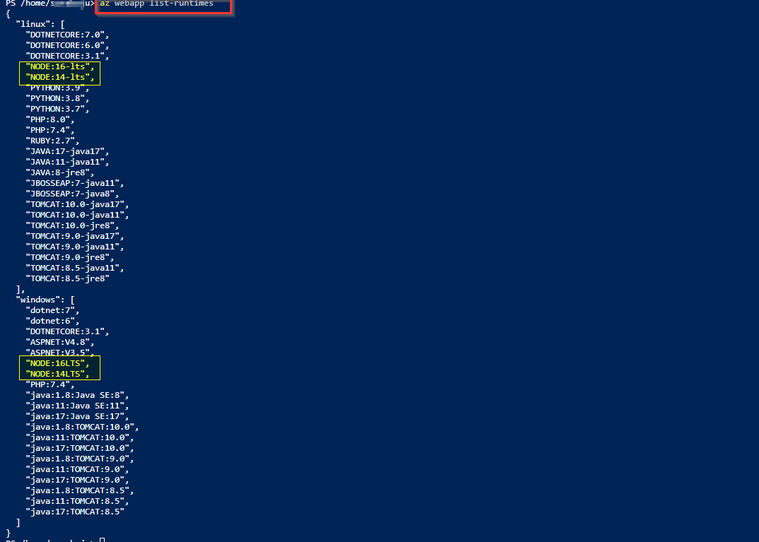 az webapp list-runtimes