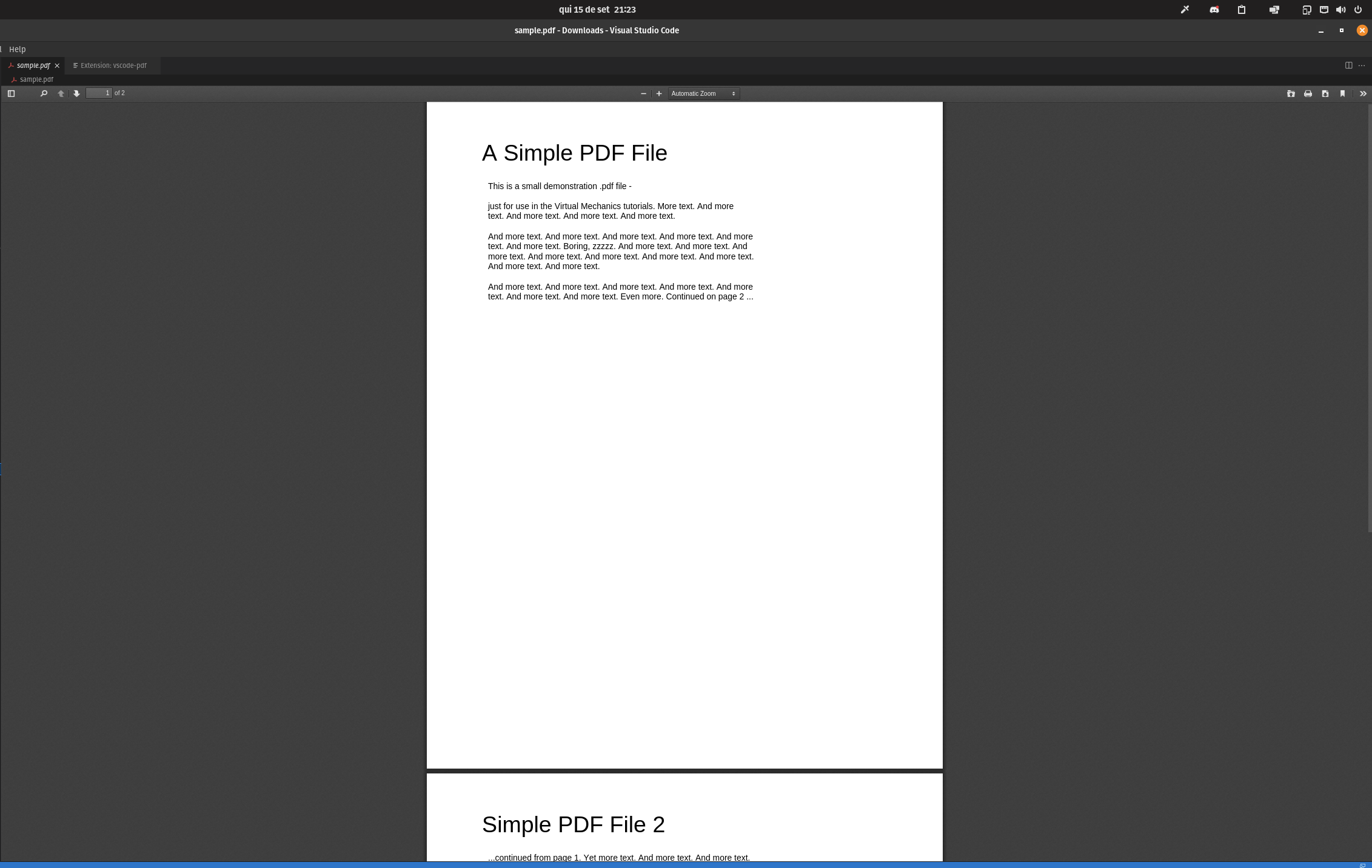 我尝试过几种不同的PDF查看扩展,但它们都遇到了相同的问题--所以我怀疑这可能与VScode本身有关。
