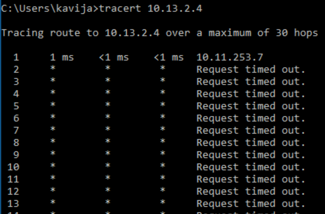 C:\Users\kavija>tracert 10.13.2.4 追踪路线至10.13.2.4,最多30跳