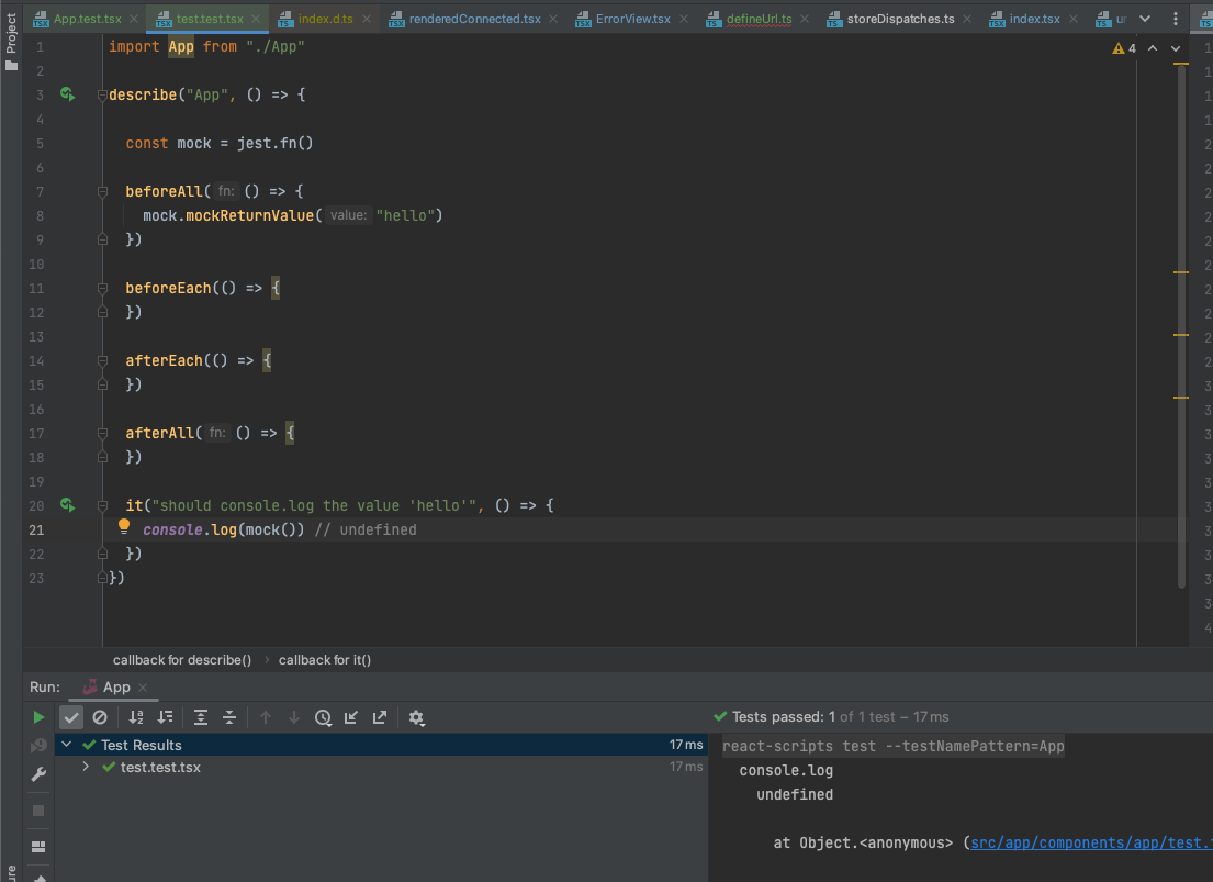 时,当我试图在测试中对它的值进行console.log时得到undefined