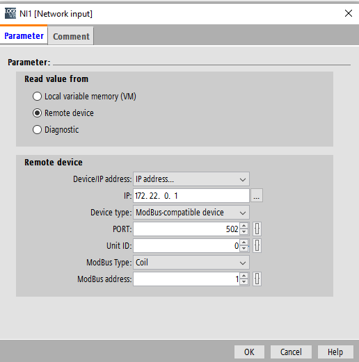 西门子软舒适性网络输入的设置(我还尝试了ID 255单元和Modbus类型的DI(数字输入))
