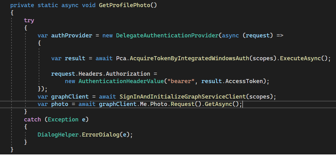下面是几个使用帮助程序代码获取已登录用户的配置文件照片的示例