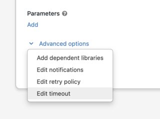 在任务的高级下拉列表中,有一个设置超时的选项.