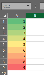 List = [2,10,18,50, 100, ... 500]在这种情况下,2应该有最轻的颜色和500应该有最暗的颜色值。下面这张来自excel的图片显示了我的意思: