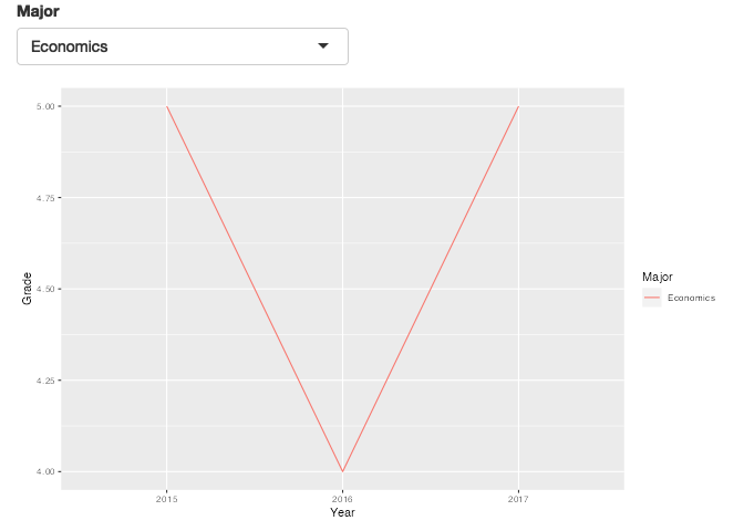 我感兴趣的是制作一个闪亮的R应用程序,其中有一个按年显示的单行图,还有一个选择专业的selectInput