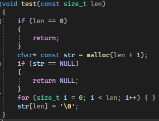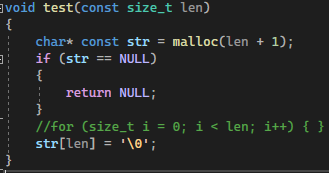 如果我在len调用之前为malloc变量添加0检查,那么警告也会消失。然而,请注意,这是没有意义的。我应该检查的值是(size_t)-1,添加了1,这将导致传递给malloc的参数为0,这可能触发我在交叉路径之前从未听说过的未定义行为,并在VS中发出这个奇怪的警告。