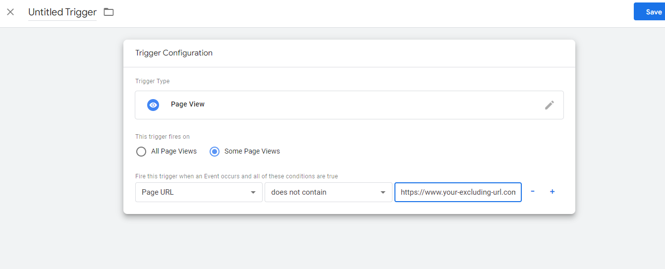 也许您可以在配置标记中添加一个触发器,但不包括不想跟踪的urls。