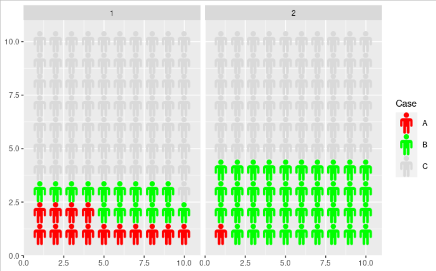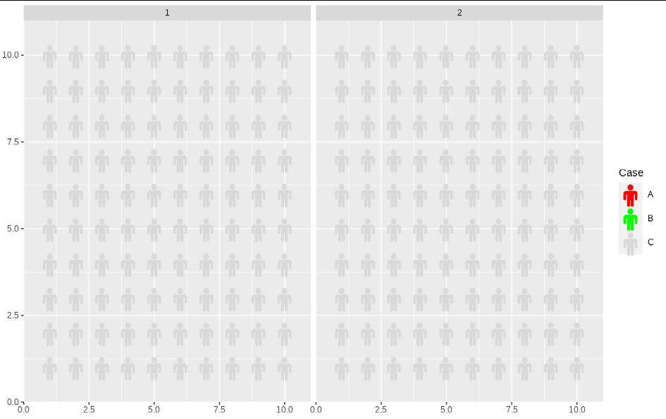 library(waffle)您还需要一种显示象形图的方法,例如:
