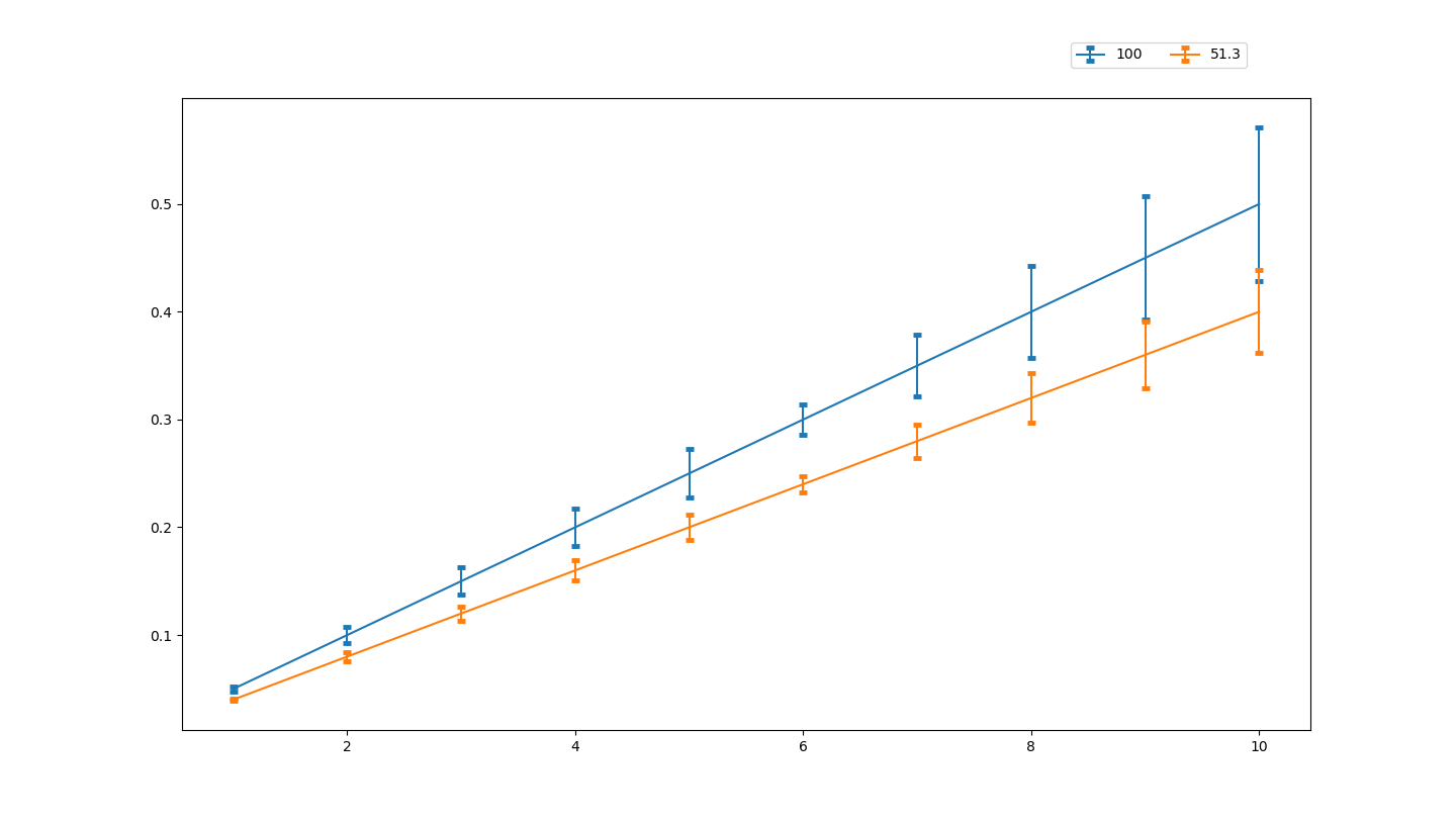 plt.errorbar(x, y1, yerr=y1_err, label="100", capsize=3, capthick=3.5)