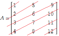 antidiag3 = (4,3) 在上面的示例(m,n)=(row, column)中。为了说明我所说的反对角线元素的含义,请参阅下面的矩阵,其中红线是反对角线。