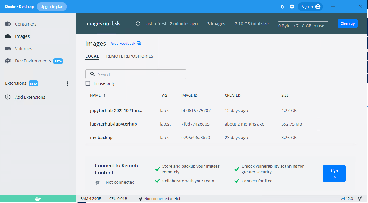 PS C:\Users\Administrator>docker映像是"jupyterhub/jupyterhub",而"jupyterhub-20221021-mountsmb“是在安装了其他python包和配置后的备份。