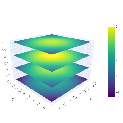 我知道如何通过在每个曲面上添加一个偏移量来叠加曲面图(请参阅此页面:https://plotly.com/julia/3d-surface-plots/),但这并不是我想要实现的,因为曲面图不是平面的,但是顾名思义,它是一个曲面。我目前的解决办法是使用一个足够大的偏移量,使每个表面看起来都是平坦的,但由于第三轴与我测量的真实世界高度有关,我对这个修正不满意。
