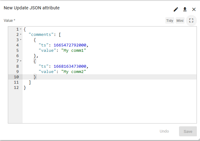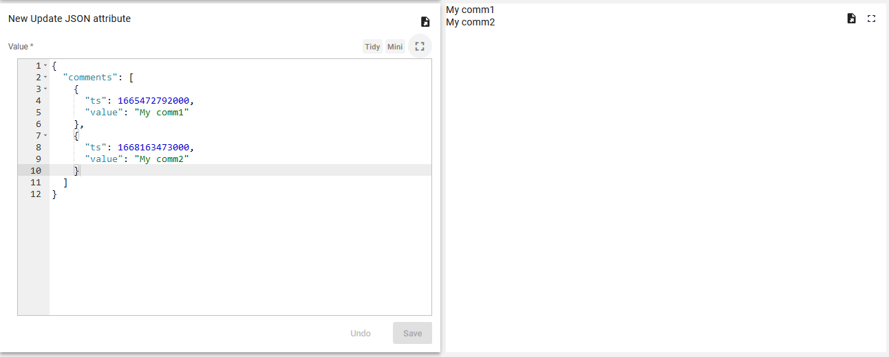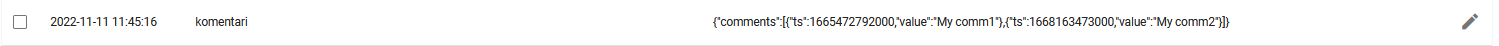 在窗口里有这样的东西:{"comments":[{"ts":1665472792000,"value":"My comm1"},{"ts":1668163473000,"value":"My comm2"}]}