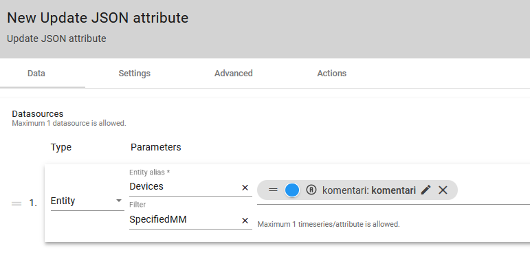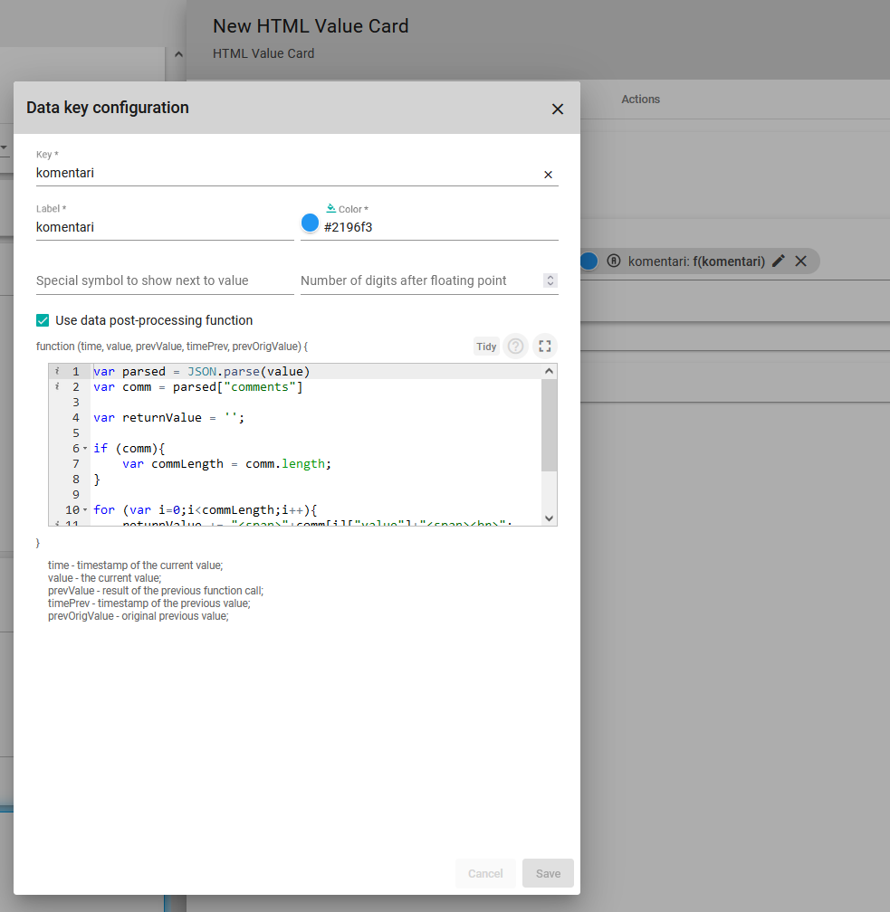 解决方案是,您有输入小部件,然后是RPC对规则链的调用,在其中您需要一些脚本将新的注释作为新字段放置到JSON数组中。这显然需要一些关于结核病的先进知识。