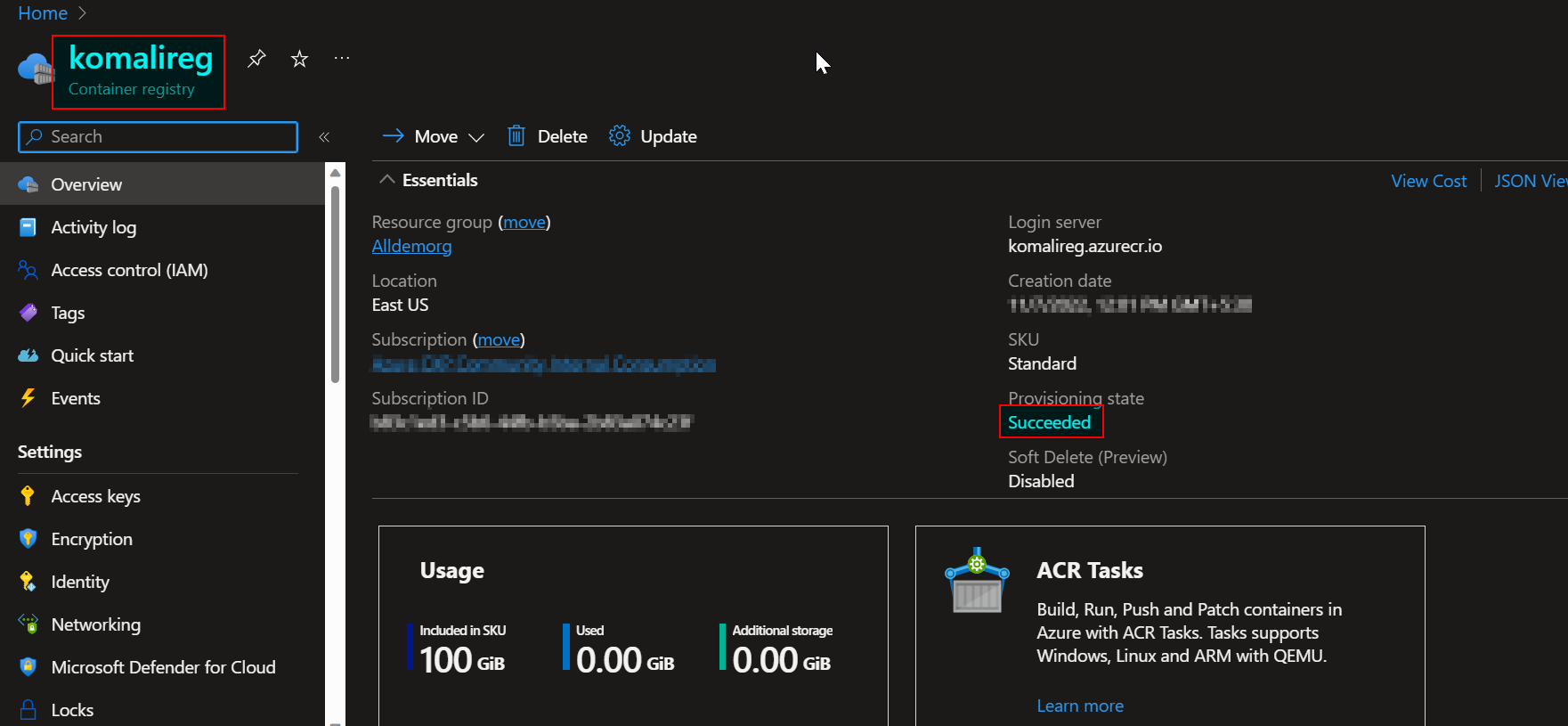 我已经创建了容器注册表。