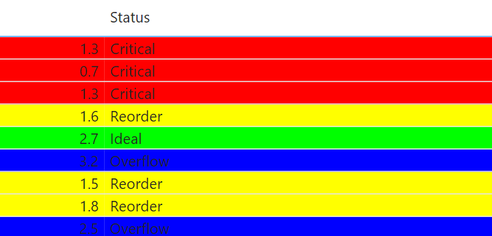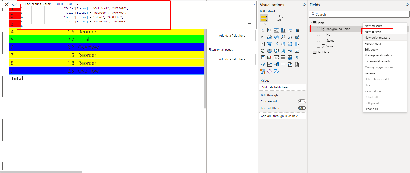 如何根据附件中的文本更改背景色。例如,关键是红色,重新排序是黄色,理想是绿色等等。