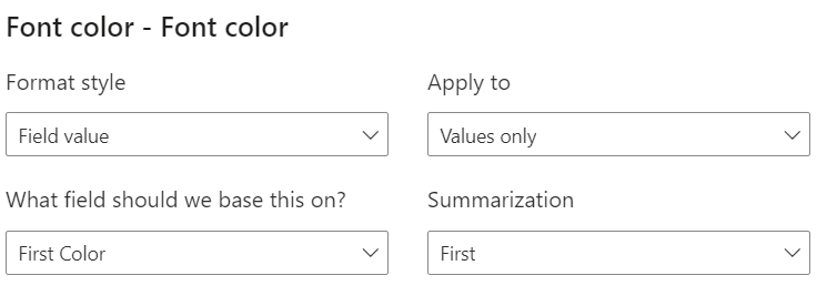 )然后,根据字段值进行单元元素的格式设置(字体颜色):