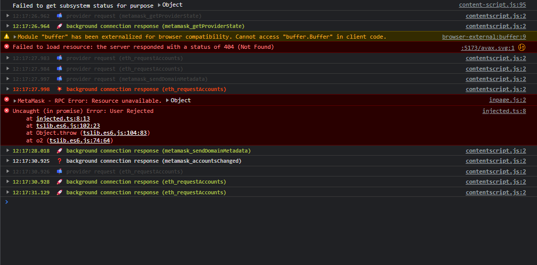 我在试图获得核心钱包账户时出错了。当我重新加载页面时会发生这种情况。它应该检测到帐户,但它不是。我用的是web3modal和以太。我也使用核心钱包雪崩富士测试网络。