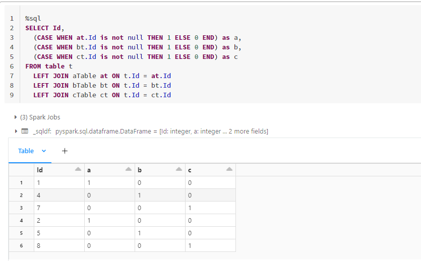 Databricks不支持使用IN或在CASE语句中存在的子查询。作为另一种选择,考虑将每个视图外部连接到主表: