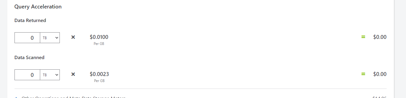 Query acceleration supports CSV and JSON formatted data as input to each request.所以它不适用于Parquet或Delta,因为它基本上是一个基于行的加速器,而Parquet是一种柱状格式。