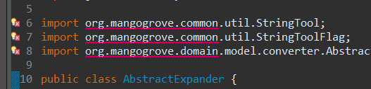 如果我在eclipse中打开AbstractExpander.java,它会将StringTool的导入显示为一个错误,并将"mango“包作为错误。(见第一张图)。