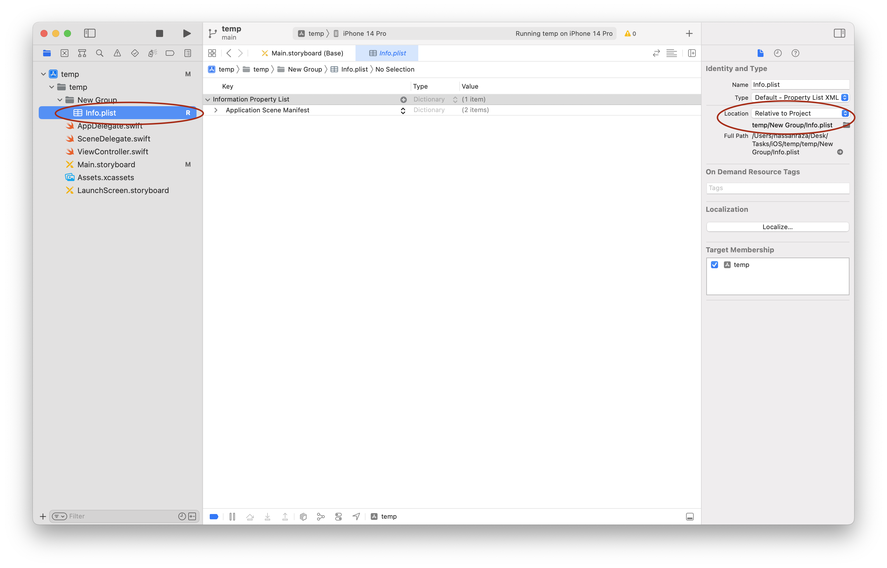 问题:在我更改了"Info.plist“项目的位置后,显示了黑色屏幕。