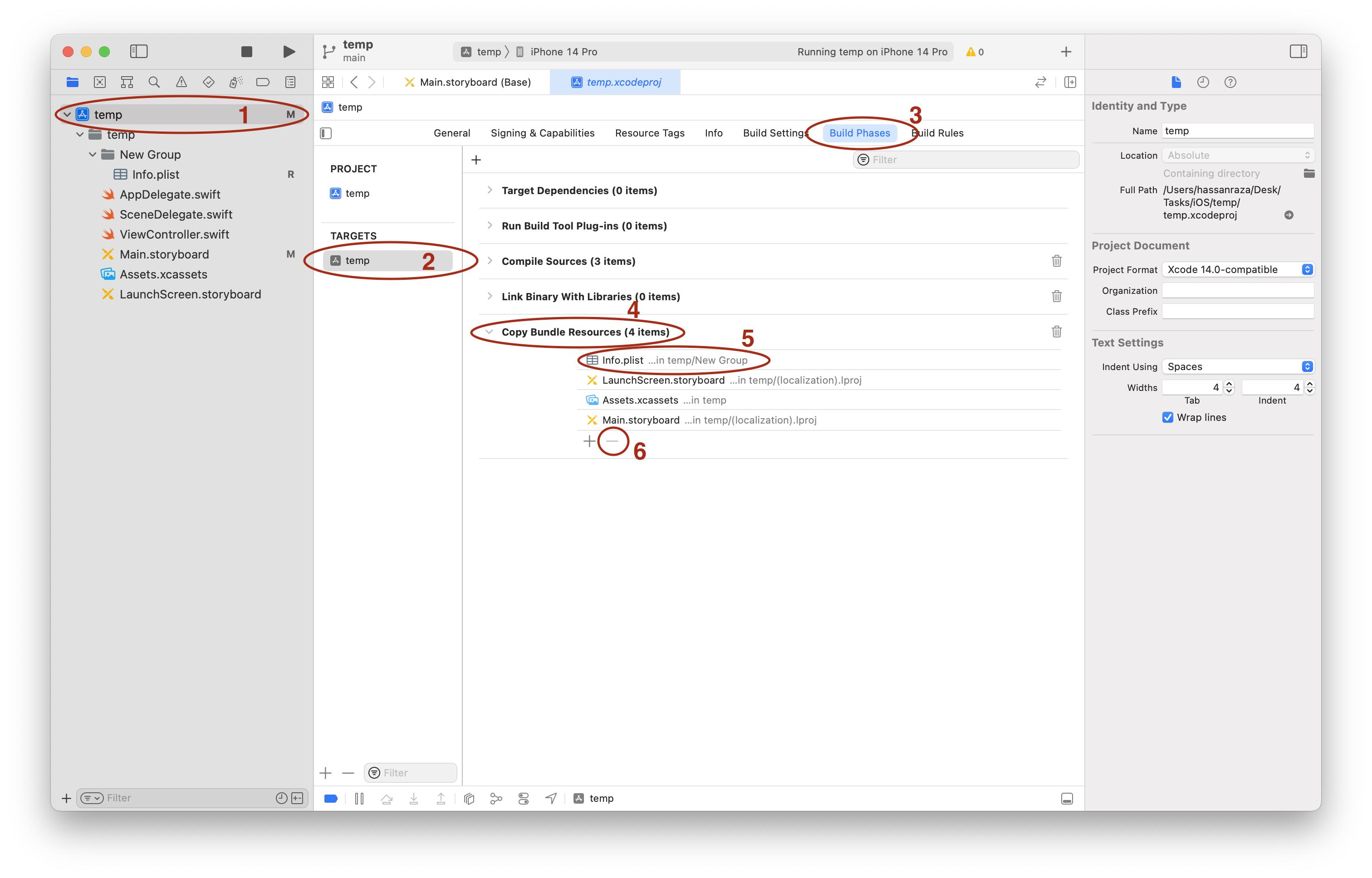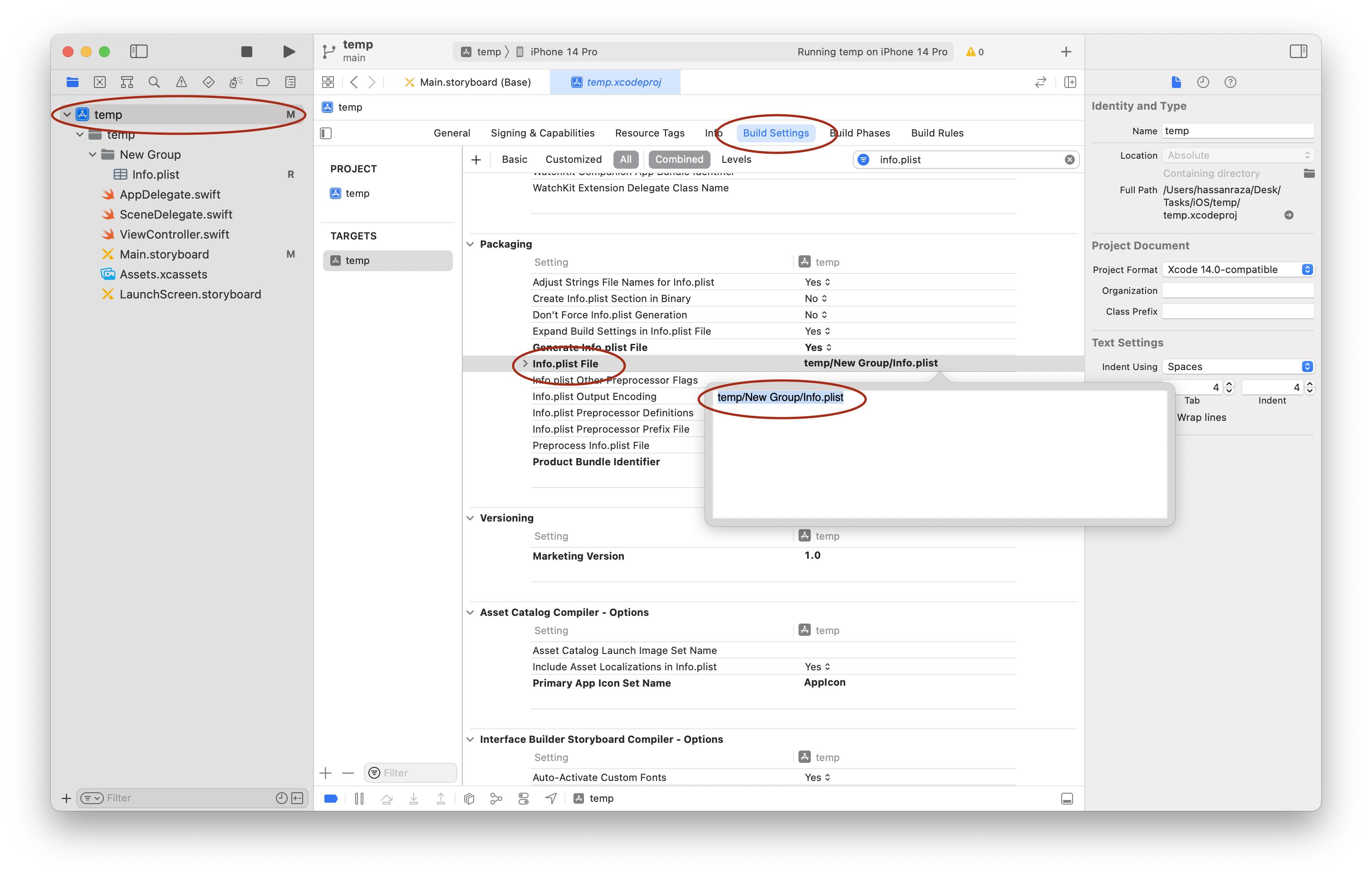 现在转到您的Bundle settings -> Open Build Settings -> In Packaging编辑Info.plist File ->并粘贴您先前复制的路径。
