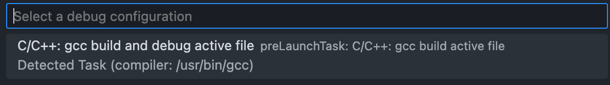 当您单击右上角的箭头(以运行该文件)时,您将被询问要使用哪个编译器。在我们的例子中,我们可以使用gcc编译器: