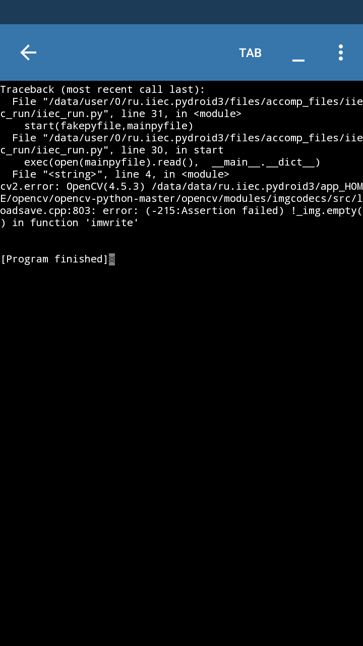看起来像是一些预演问题,因为opencv无法从相机中获取图像。我已经有了Pydroid权限插件,但这不起作用。