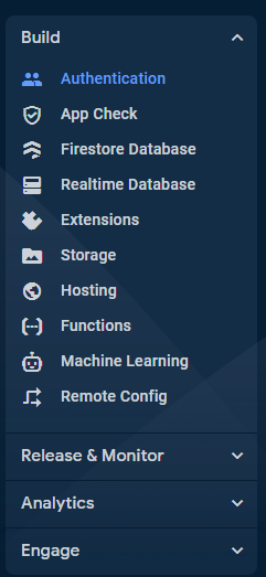 如果您正在使用Firebase,您可以通过转到Firebase控制台,选择链接到您的应用程序的项目,并进入"Build“类别中的”身份验证“服务来创建一个帐户。